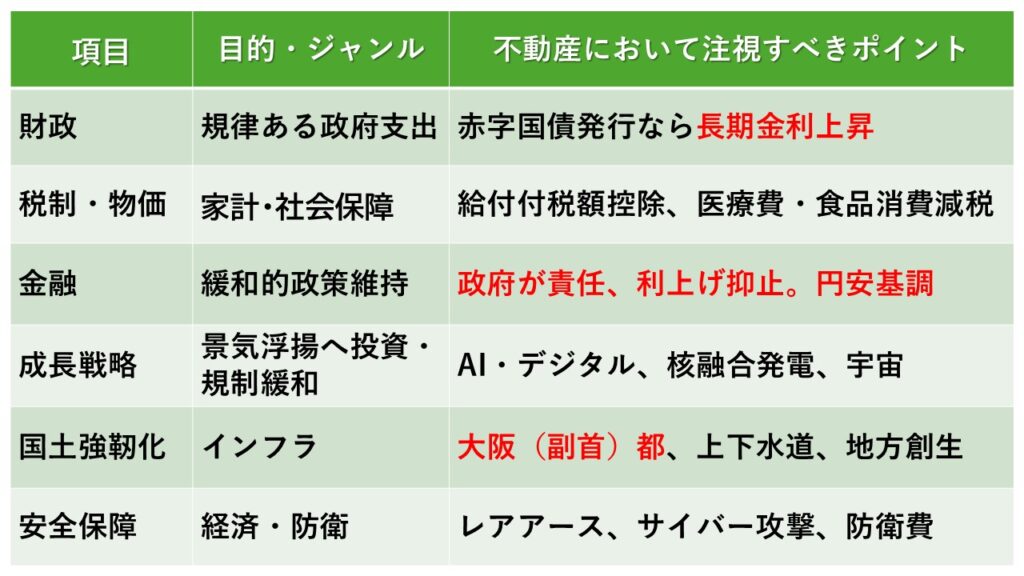 メーンとなる高市政策は12~13種類。日本維新の会との連立で通称「サナエノミクス」も修正される場面もありそうですが、いったん主だった政策を雑駁ながらまとめてみました。