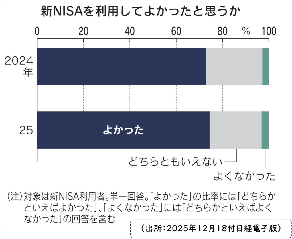 QUICK資産運用研究所などの調査によると、新NISAを利用して「よかった」という回答が7割を超えました。