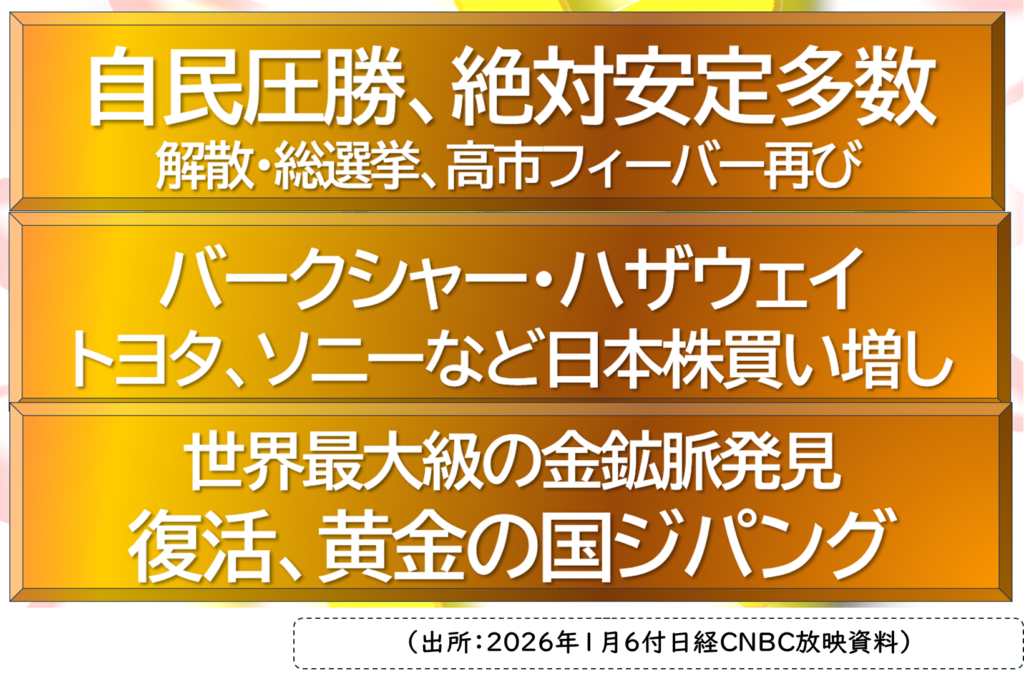 ほとんどの市場関係者は2026のリスク要因について米国と日本の金利、業績に集中しており、「解散・総選挙」は念頭にすらなかった感じでした。