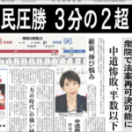 中曽根内閣時をはるかにしのぐ戦後最多の316議席、与党で354議席を獲得する記録的な大勝になりました。絶対安定多数はもちろん憲法改正の発議にも必要な3分の2をも超え、衆院全議席数の8割に迫る勢い。