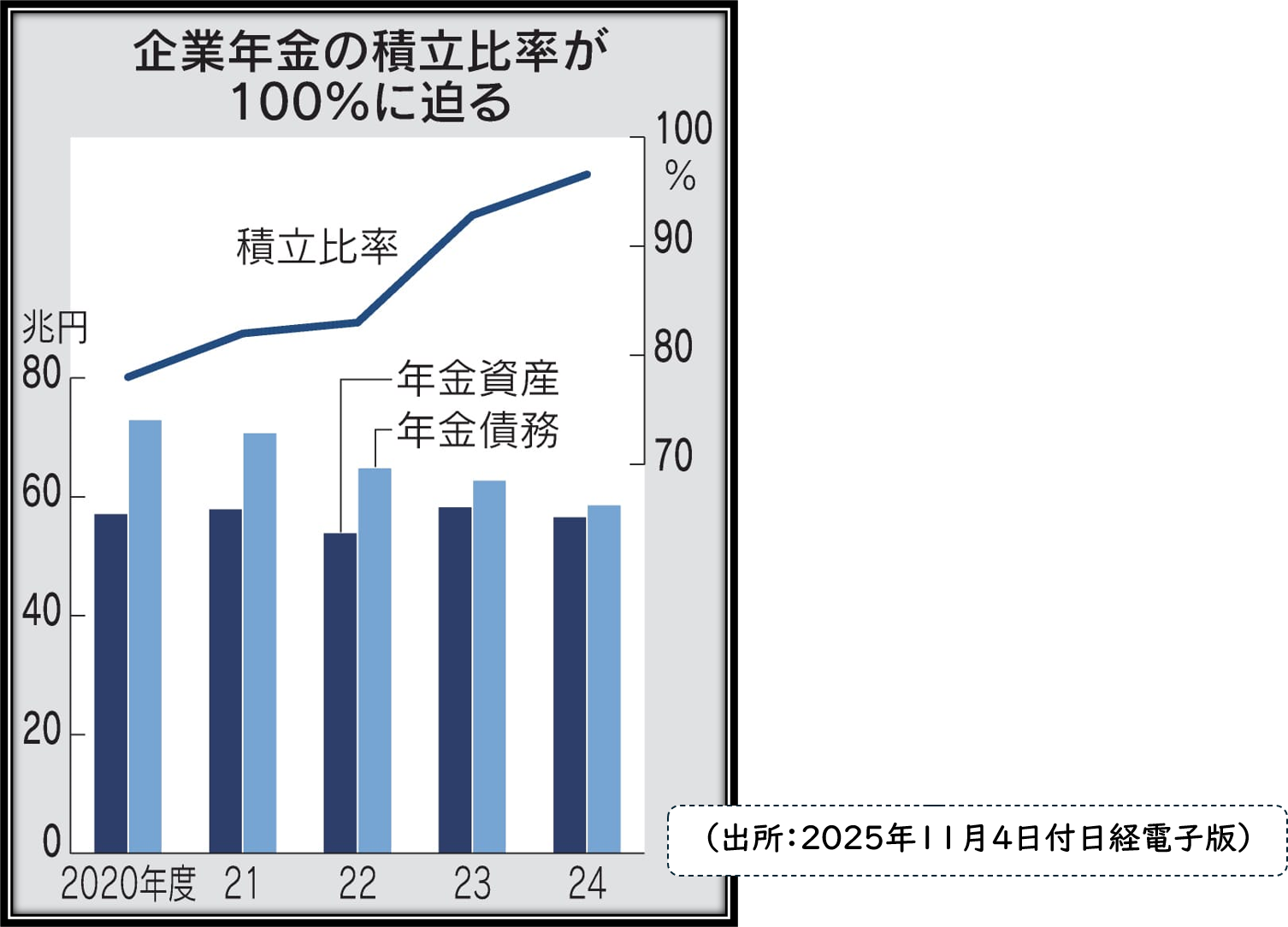 上場企業の多くは従業員に年金を支払う企業年金制度を採用しています。確定給付型年金(DB)で通称、退職年金と呼ばれます。会社にとって将来支払う固定債務の一種で、隠れ借金ともいえます。会社はこの準備金を積み立てることが大きな負担なのですが、金利上昇によって負担が解消に向かうというのです。