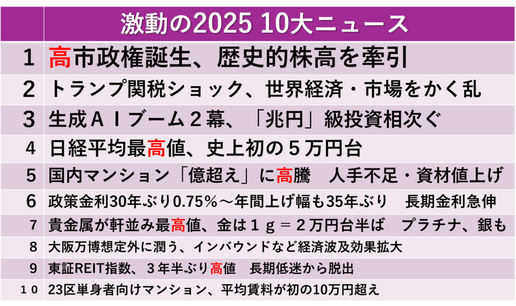 トップはやはり憲政史上初の女性宰相誕生と金融・資本市場に与えた強烈なインパクトだと思います。特に日経平均株価は節目を次々と突破し、一気に5万円台まで上昇しました。